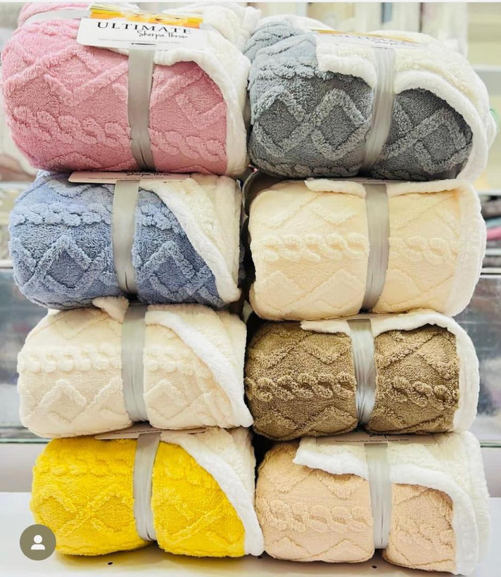 پتو مسافرتی گوسفندی لبه نوار دوز سفید