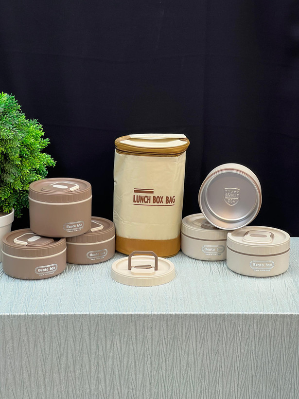 ظرف غذا لانچ باکس داخل استیل سه تکه همراه با کیف