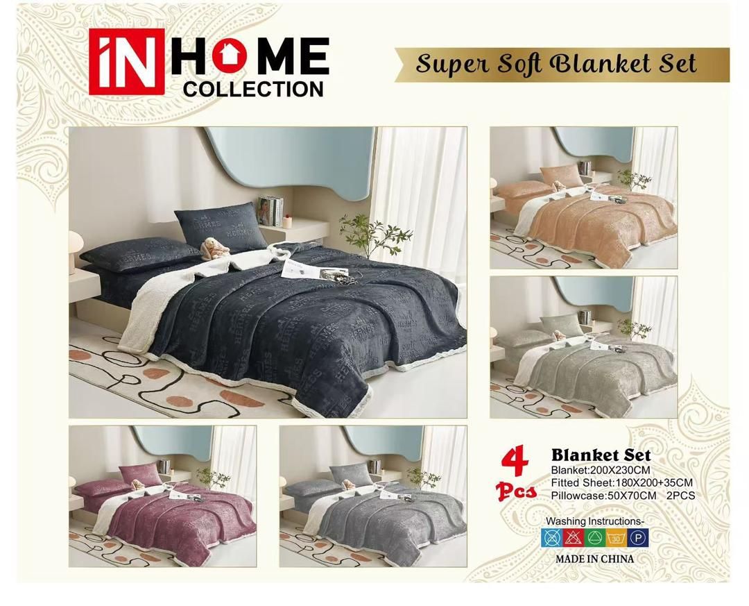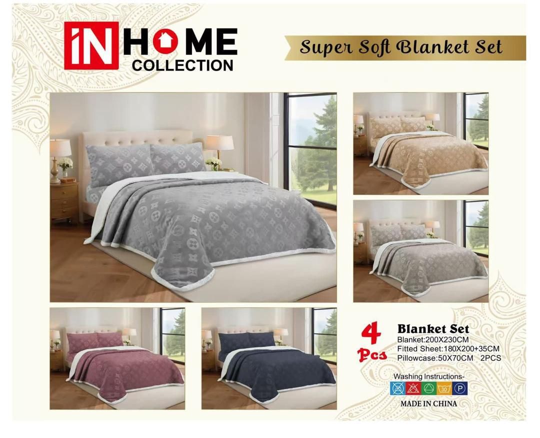 روتختی چهارتیکه دو نفره شامل خوشخواب پتو گوسفندی و دو عدد روبالشتی