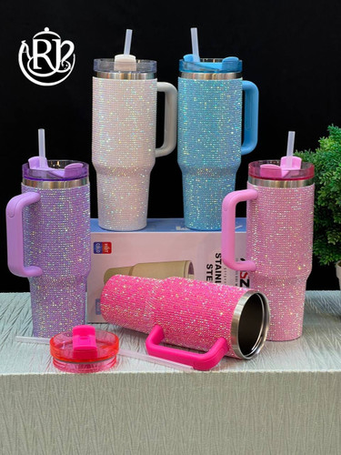📌تراول ماگ نگینی سایز 1000ml دسته دار استیل 304 سرد و گرم در 5رنگ کد 424 2 حالت نی نوش و آب نوش ساخت کشور چین وارداتی