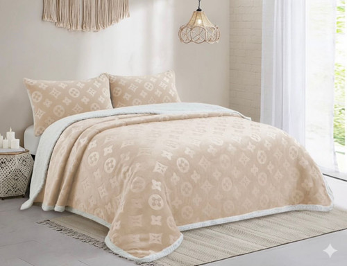 روتختی چهارتیکه دو نفره شامل خوشخواب پتو گوسفندی و دو عدد روبالشتی